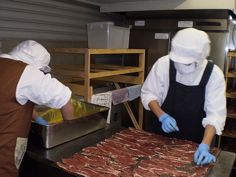 | スモークポークジャーキー「ミエ・シャントン」の製造 |